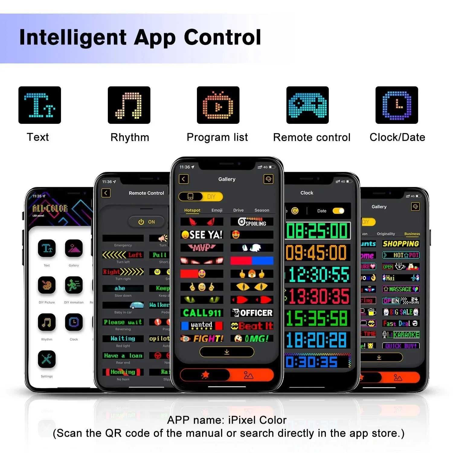 • Bluetooth App: “iPixel Color”